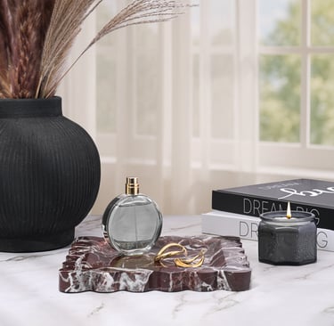 * Switch it up seasonally: In summer, you might use lighter accents (white candles, shells, greens); in fall, richer hues and textured objects (ceramics, gourds). The tray stays neutral — your décor evolves.